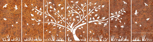 7 Panels Tree and bird Design -Decorative Screens and Privacy Screens